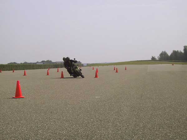 The same applies to the figures of eight etc you have to show: these days, the exercises include slaloming at a higher speed, in which you should show that you can lean in the bike by using your hips not only at walking speed, but at motorcycle-speed as well.